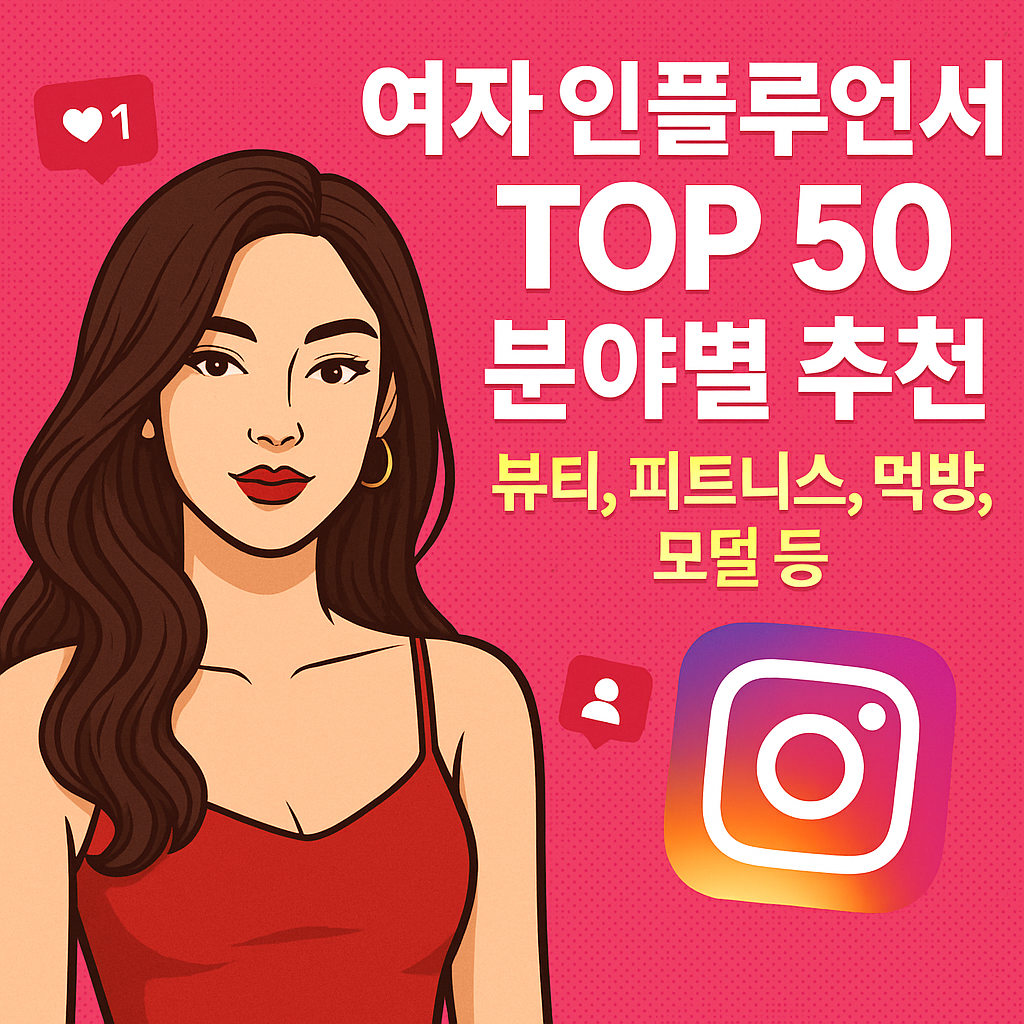 💁♀️ 여자 인플루언서 TOP 50 분야별 추천 (뷰티, 피트니스, 먹방, 모델 등)요즘 누구 팔로우할지 고민되시죠?인스타그램, 유튜브, 틱톡 등 SNS에서 핫하게 떠오르고 있는실제 대한민국 여자