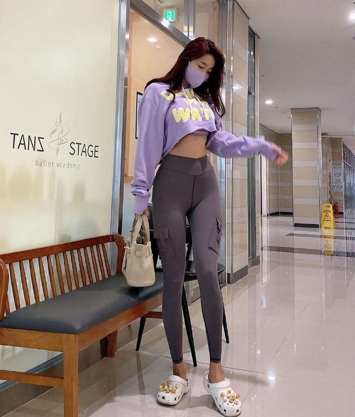 오또맘은 레깅스를 입을 때 상의는 크롭탑이나 브라탑을 매치해 잘록한 허리 라인을 더욱 돋보이게 만듭니다. 여기에 오버핏 재킷이나 후드티를 걸치면, 캐주얼하면서도 스타일리시한 룩이 완성됩니다.